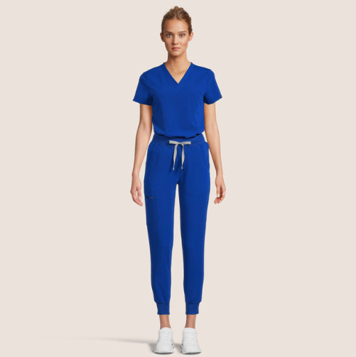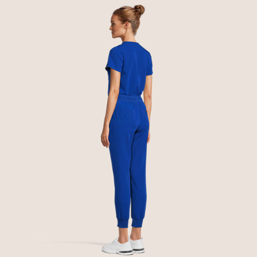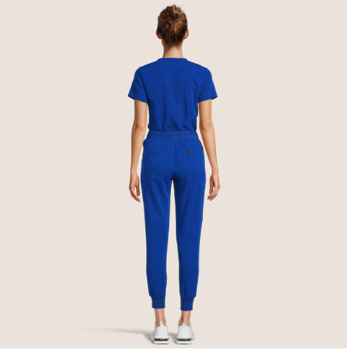 This professional scrub set is just what you need to start your long shift off right. The Jaro Joggers feature a fitted jogger hem and a high-rise, drawstring waistband allowing you to move and work without hesitation. Functionality provided with five pockets: two back, two front and one zippered cargo pocket on the right leg. While the V neck style top includes a pocket to the left chest, and two hidden pockets on the sides - looking great worn tucked or untucked.